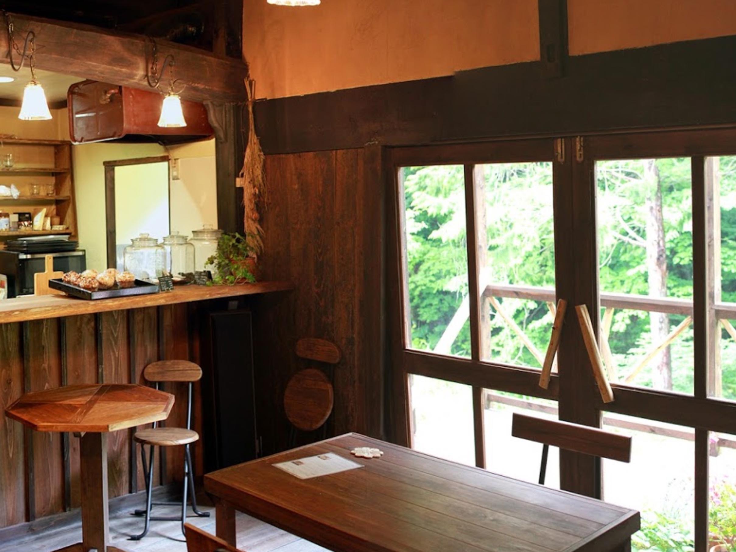 ローカルバスの最終停留所のある少しだけ山奥、標高900mの古民家を改修したお店。希少な素材や、オーガニック素材を中心に、山の湧き水を使って自家焙煎珈琲、ヴィーガンな焼き菓子やベーグル、お食事を提供しています。ディナーでは川のせせらぎの響く中、満点の星空を窓越しに見ながらお料理を楽しむなんて贅沢も。大自然の中にポツンとたたずむ隠れ家的カフェです。